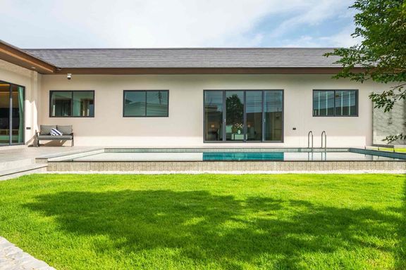 For Sale - 4 BDs Pool Villa Single Storey in Paradise Hill 2 Village Presale Price 12.9 million baht. 4 Bedrooms, 4 Bathrooms, 129 Sq.w. or 516 Sq.m...