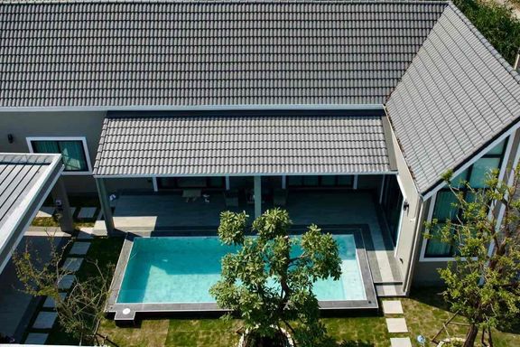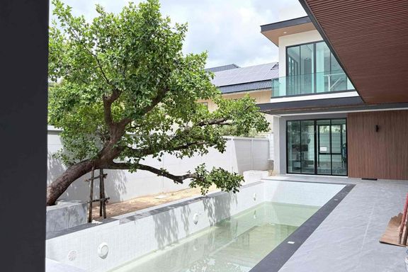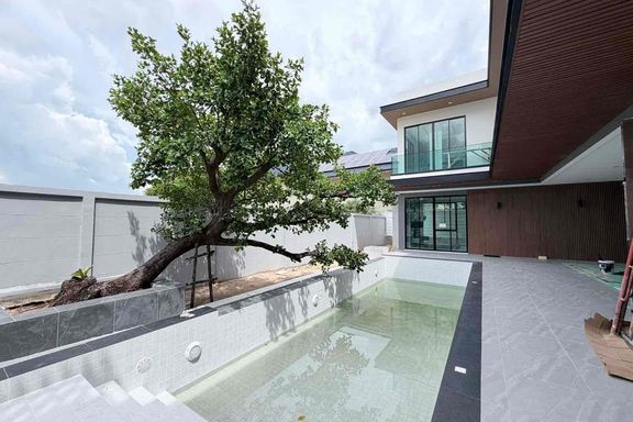 Luxury pool villa for sale in Map Prachan. Under construction. Images updated on *18/10/2025 Both 2- and 3-story units available. - 2-story launch p...