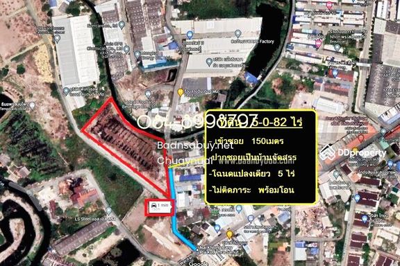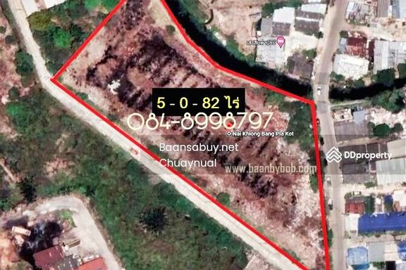 Land for sale, Phra Samut Chedi, Soi Wat Yai, 5-0-82 rai, suitable for housing development, 18,000/sq wah. ** If interested, contact: -----...