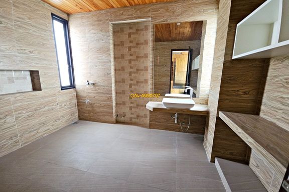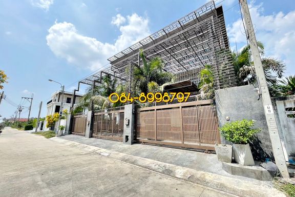 For sale, luxury semi-detached house, 3 storeys, self-built, Soi Tiwanon-Pak Kret 34 (Soi Budget 9), area 170 sq wah, with elevator, modern style desi...