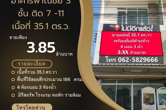 ขายอาคารพาณิชย์ 3 ชั้น ติดถนนเทพาพัฒนาใกล้ขนส่งผู้โดยสาร อำเภอเมือง เพชรบูรณ์ เนื้อที่ 35.5 ตารางวา 4 ห้องนอน l 3 ห้องน้ำ l 1 ห้องโถง l 1 ห้องครัว l...
