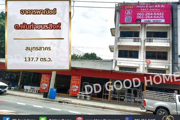 ทำเลดี น่าลงทุน!! ขายอาคารพาณิชย์ 3 ชั้นครึ่ง 2 คูหา ถนนเอกชัย สมุทรสาคร เนื้อที่ 111 ตารางวา l พื้นที่ใช้สอย 900 ตารางเมตร กว้าง 8.8 เมตร l ลึก 44.5...