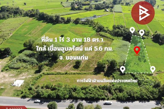 ที่ดิน : อุบลรัตน์ ขอนแก่น ที่ตั้ง : ต.ทุ่งโป่ง อ.อุบลรัตน์ จ.ขอนแก่น รหัสทรัพย์ : T-122337 ประเภท : ที่ดิน เนื้อที่ : 1 ไร่ 3 งาน 18.0 ตารางวา กว้า...