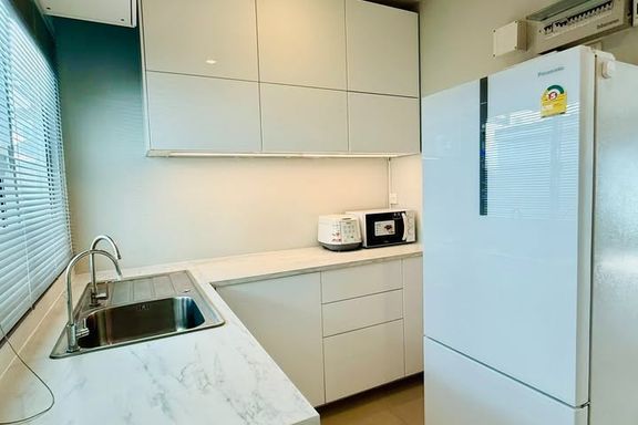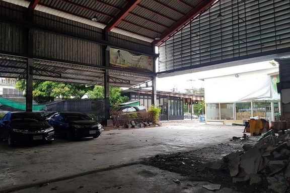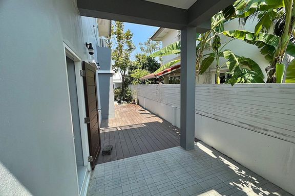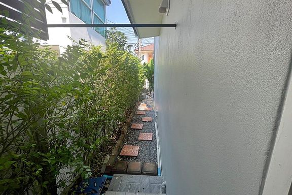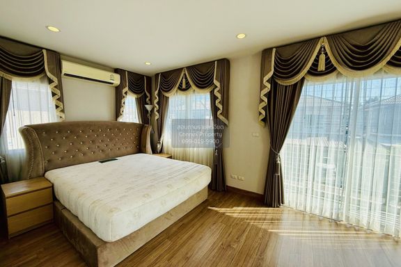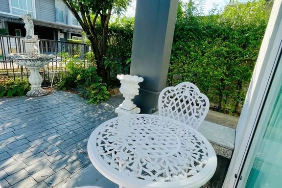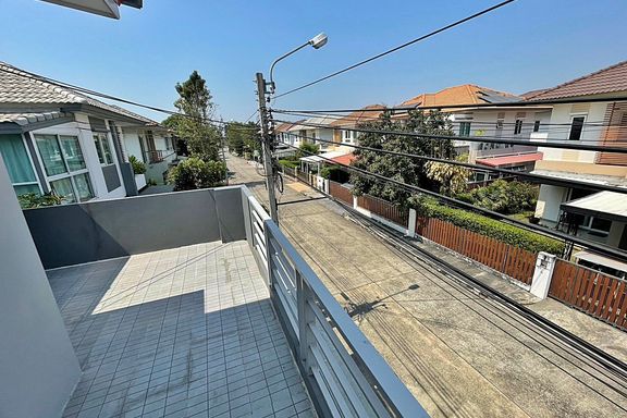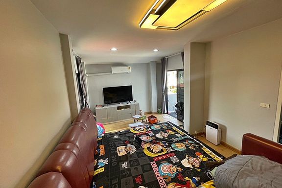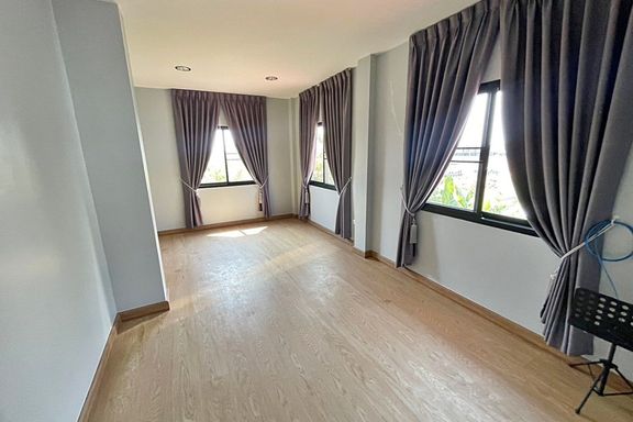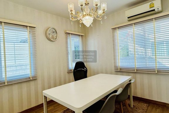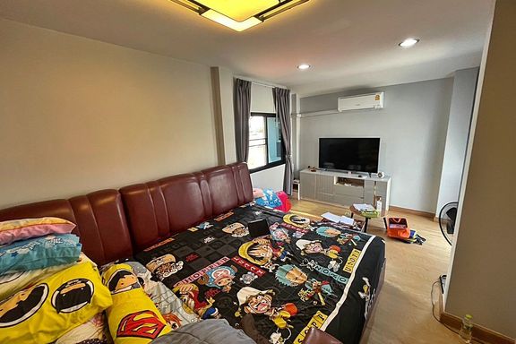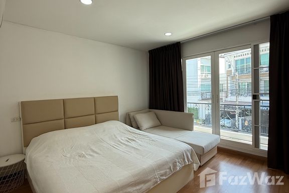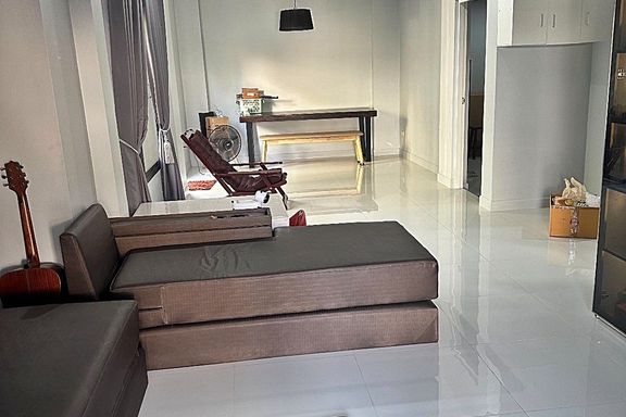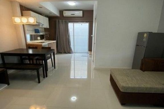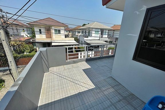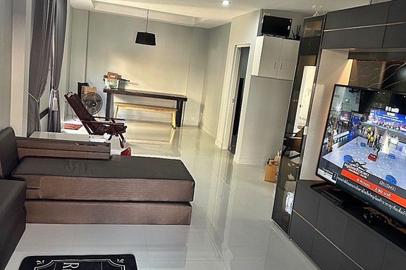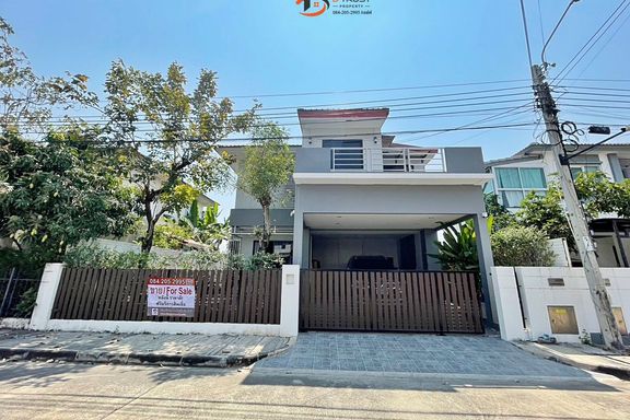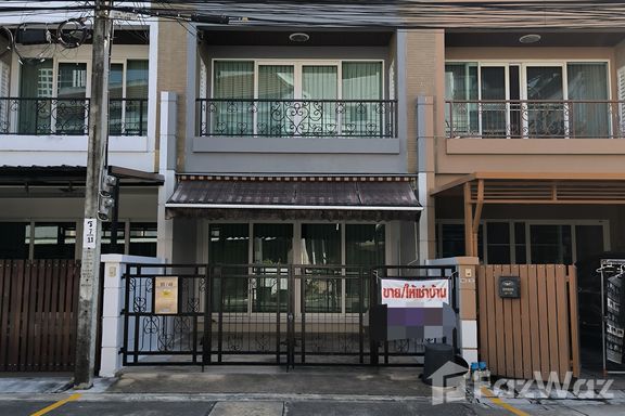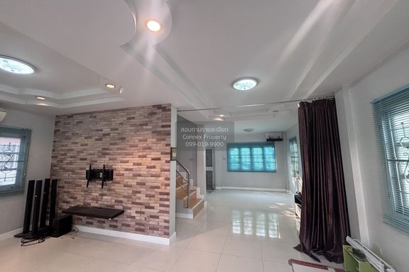 For sale or rent: 25,000 THB/month. 3-story townhome in Klang Muang Suk Sawat Village, near the BTS Skytrain and HomePro Suk Sawat. Newly renovated.