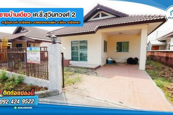 เค.ซี.สุวินทวงศ์ 2 บ้านเดี่ยว 1ชั้น 51 ตร.ว. 2 ห้องนอน, 1 ห้องน้ำ, ที่จอดรถ 1 คัน ถ.สุวินทวงศ์-ฉะเชิงเทรา ต.คลองหลวงแพ่ง ฉะเชิงเทรา K.C. สุวิทวงศ์ 2...