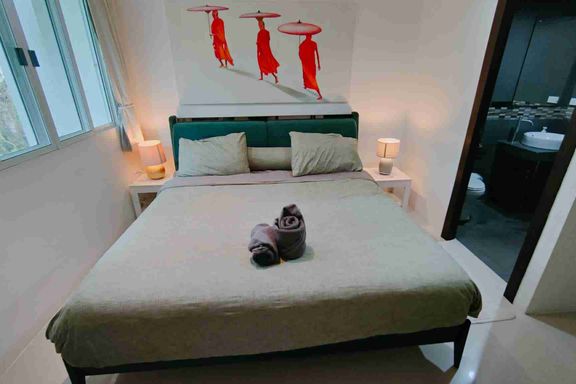 คุณสามารถมองเห็นวิวทะเลที่สวยงามและสระว่ายน้ำส่วนตัวจากทาวน์เฮาส์หลังนี้ได้ เป็นที่พักแบบบริการตนเองที่เดินทางจากหาดสุรินทร์มาได้ในระยะสั้นๆ มาพร้อมกั...