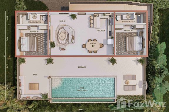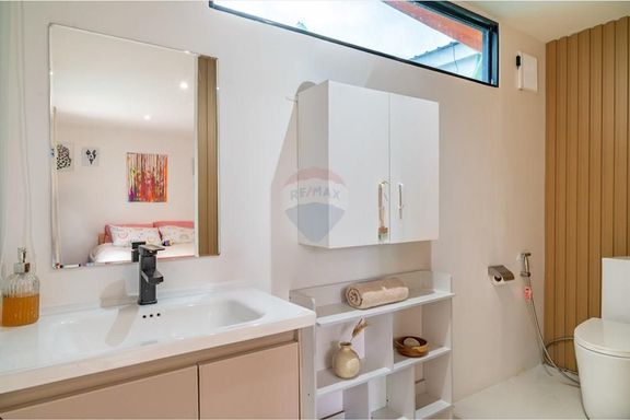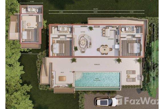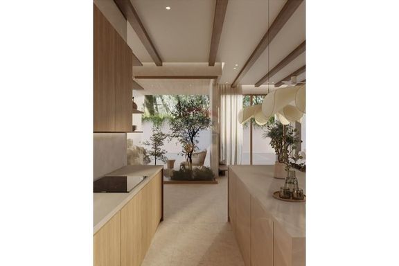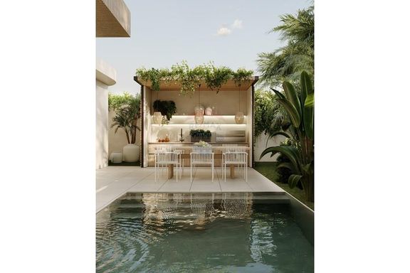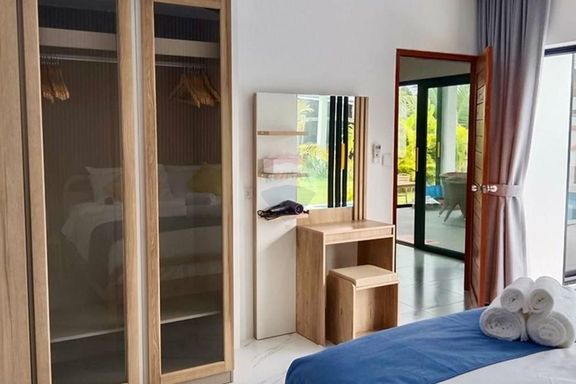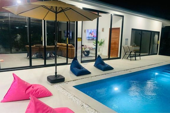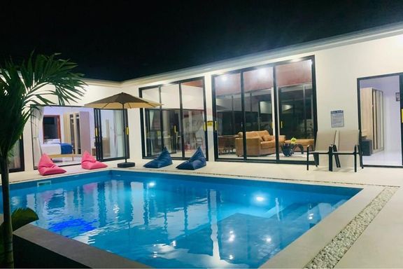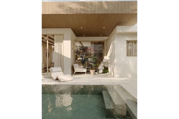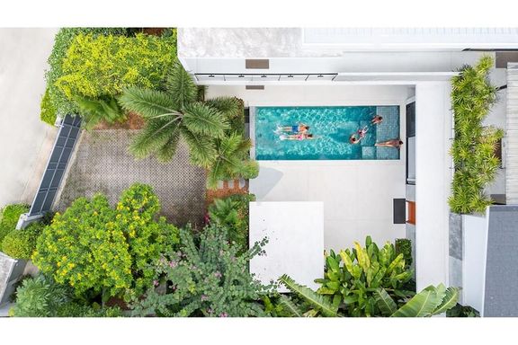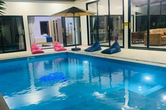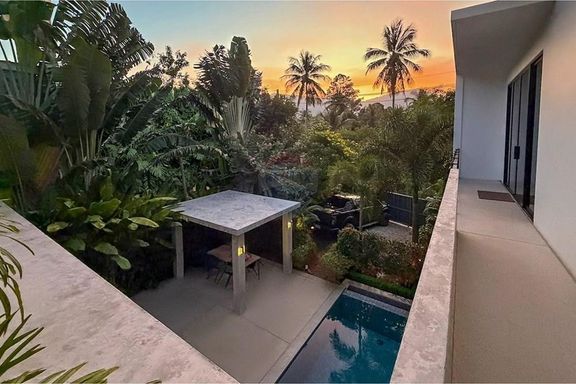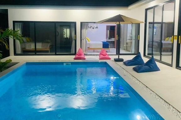 - ระดับกลาง (ประมาณ 10–20 ล้านบาท): งบประมาณนี้จะได้ พูลวิลล่าแบบดีไซน์สวย มาตรฐาน 3 ห้องนอน 3 ห้องน้ำขึ้นไป พื้นที่ใช้สอยมักอยู่ราว 200–300 ตร.ม. วิลล่ากลุ่มนี้มักสร้างบนที่ดินขนาด 1 งานถึง 1 ไร่ (ขึ้นกับทำเล) อาจมี สวนส่วนตัว หรือลานระเบียงกว้างขวาง เหมาะสำหรับครอบครัว สิ่งปลูกสร้างอาจเป็นบ้านชั้นเดียวสไตล์บาหลีหรือบ้านโมเดิร์นสองชั้น โดยทั่วไปวิลล่าในช่วงราคานี้มักตั้งอยู่ในทำเลใกล้ชายหาดหรือมีวิวธรรมชาติสวย แต่ถ้าวิวทะเลอาจจะเป็นบางส่วนหรือมุมมองไกลๆ