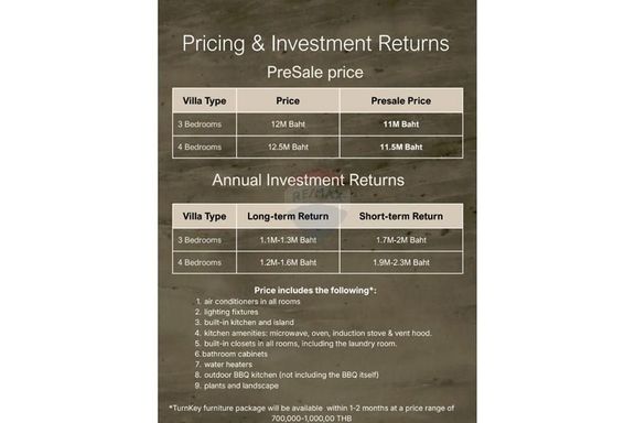 กลยุทธ์การลงทุนเพื่อเพิ่ม ROI: นักลงทุนบางรายเลือกซื้อวิลล่า ตั้งแต่ก่อนสร้างเสร็จ (off-plan) โดยได้ราคาส่วนลดจากผู้พัฒนา และเมื่อโครงการสร้างเสร็จ ราคาตลาดของวิลล่าอาจสูงขึ้นจากตอนเปิดขายแรกเริ่ม ทำให้เกิดกำไรส่วนต่างทันที (ในสมุยมีกรณีที่ผู้ซื้อ off-plan ได้กำไร 10-15% เมื่อโครงการสร้างเสร็จ) อย่างไรก็ตาม การลงทุนรูปแบบนี้ต้องอาศัยการตรวจสอบความน่าเชื่อถือของผู้พัฒนาและยอมรับความเสี่ยงเรื่องการก่อสร้างให้แล้วเสร็จตามสัญญา